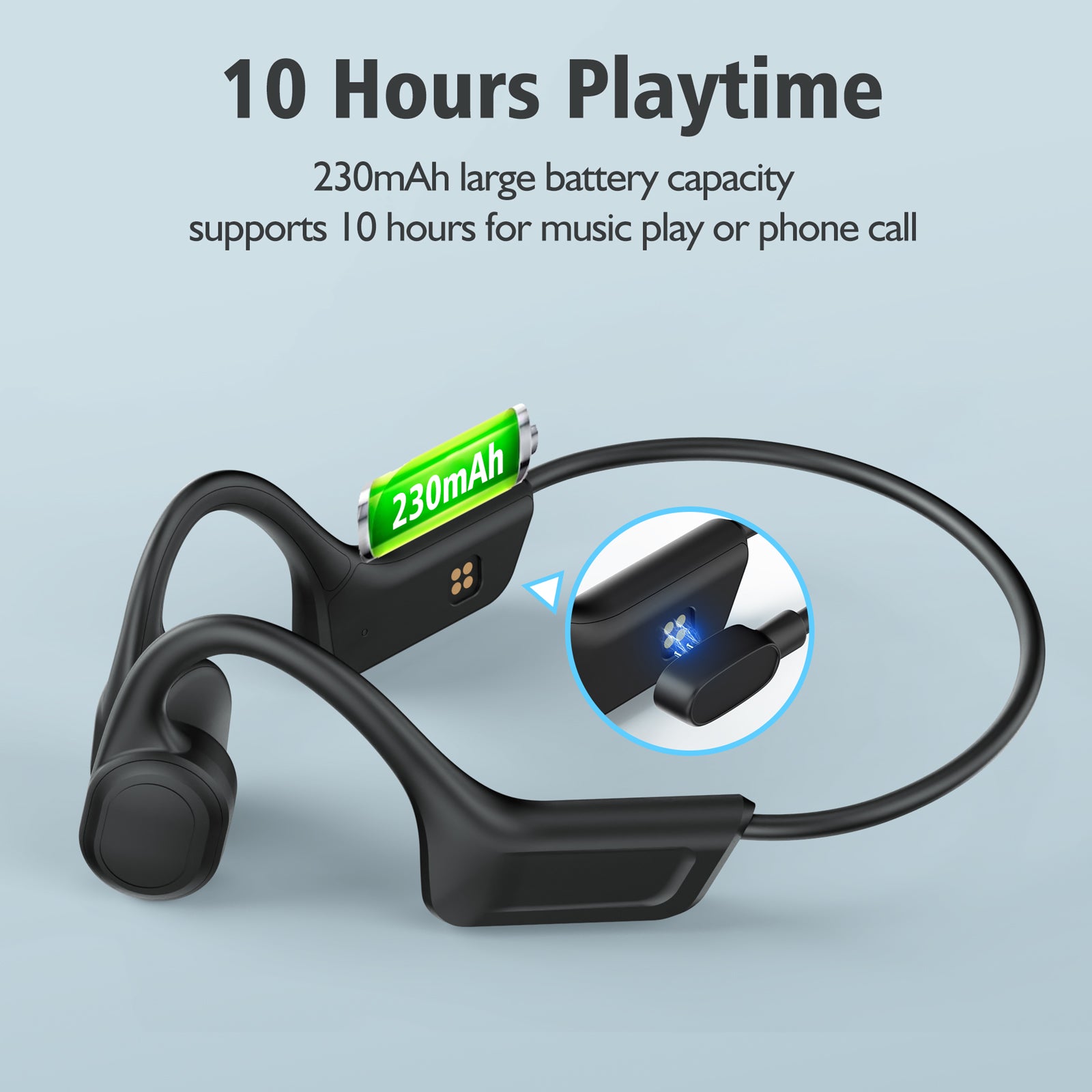 - 【8 Hours Long Battery Life】With our magnetic suction design on the charging port, your bone conduction headphones can be fully charged in just 1.5-2 hours. Enjoy up to 8-10 hours of non-stop music and an incredible standby time of over 360 hours! No worries about water or sweat, as these headphones are built to handle it all.