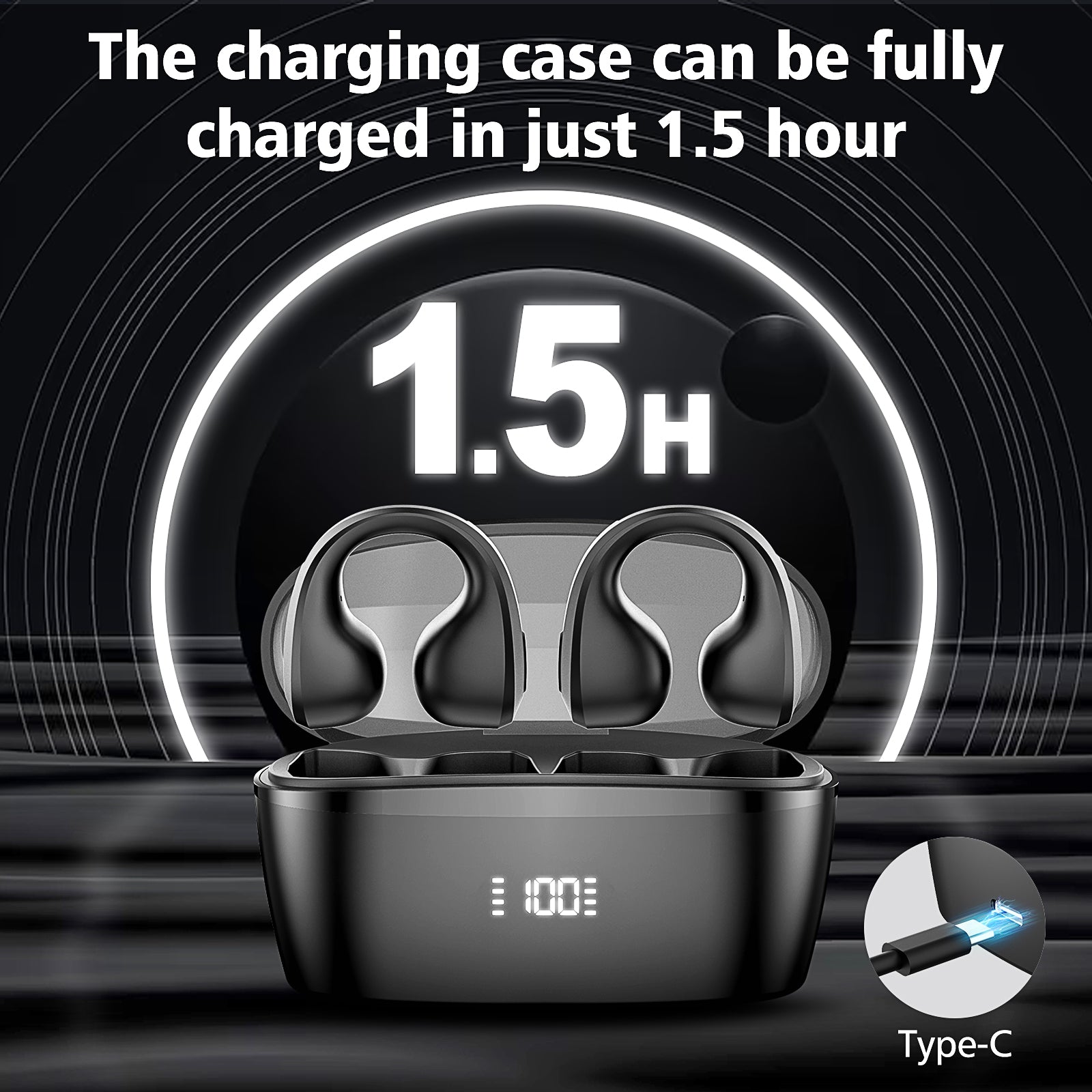 CelsusSound S600 Open Ear Clip Headphones, Wireless Earbuds Bluetooth 5.3 Sports Earphones Built-in Mic with Earphones Charging Case(Black)